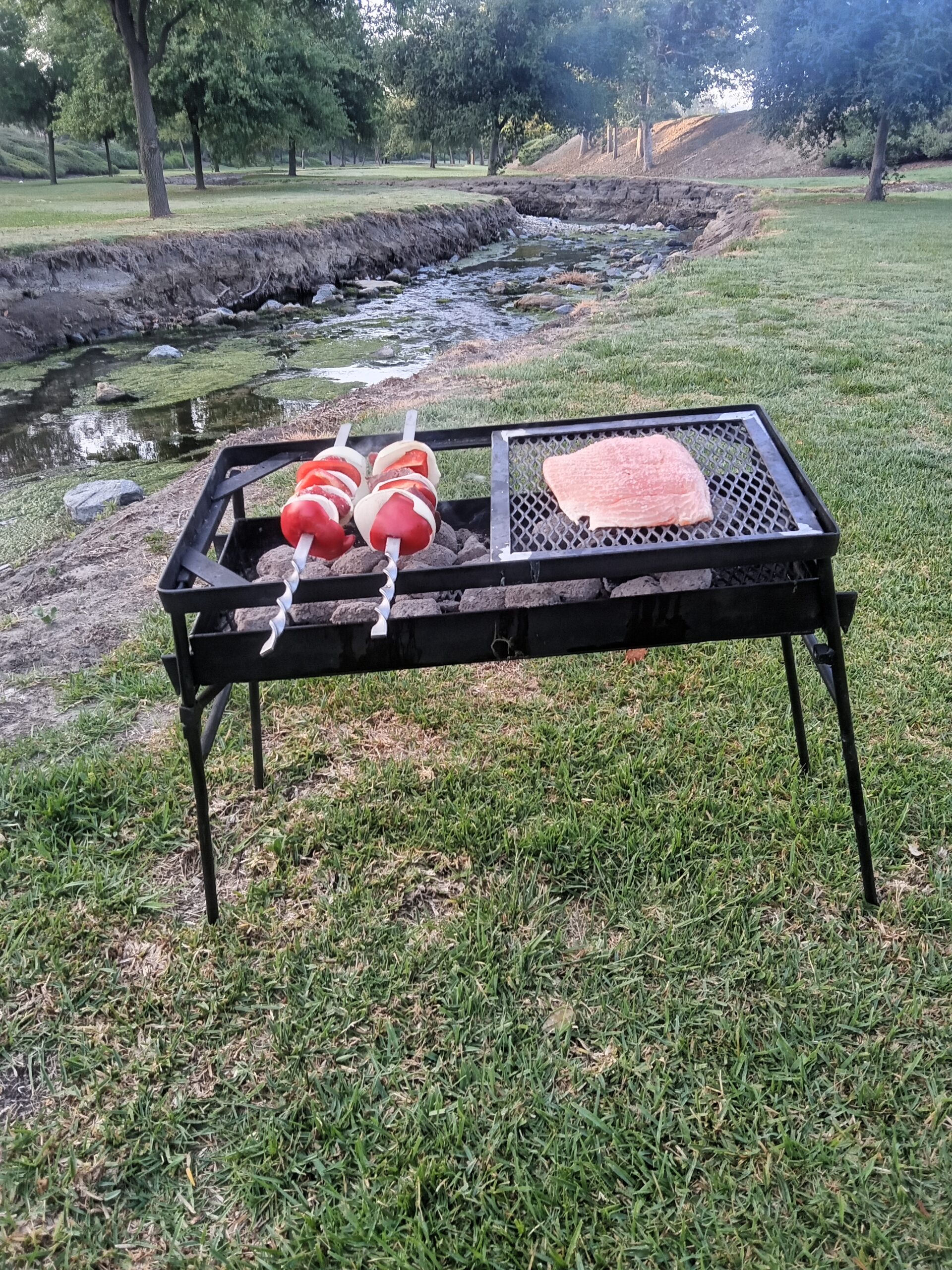 Grill skewers measurements are total length 20 long x 1/2″ wide x 1/8″ thick. Length without handle is 14″. Handle measures 6″ long. Made from American stainless steel. Made in the USA.